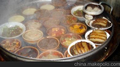 做蒸菜考究颇多。首要绝不必高压锅、电炉快蒸,大多店家都是早早起床,买新鲜菜或预备特制菜,然后打开蒸笼, 细细漫漫的蒸。 有的菜还要一蒸二蒸三蒸,如蒸木瓜,有必要做到七蒸七晒,后入味冰糖,才叫甘旨。蒸菜的碗,多为磨纱的粗瓷器,或者爽性从山上砍来竹子,把蒸菜置于竹筒内。蒸之鲜加上竹之香,更为甘旨。蒸菜用的辣椒分很多种,剁辣椒、鲜红辣椒、鲜青辣椒、浸酸辣椒、浸朝天椒、浸野山椒、晒青椒等等。不一样的菜. 入不一样的辣椒,放不一样的作料,滋味天然不一样。