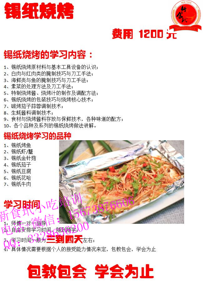 6、长沙锡纸烧烤新食玳小吃培训中心郑重承诺:一次性收费,学会为止。