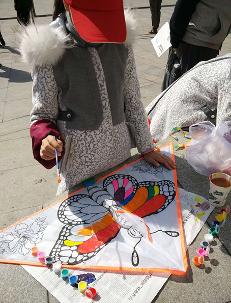 此刻!孩子们按耐着内心的激动,你谦我让,秩序井然。认真描绘,细心勾画。一只只美丽的风筝在孩子们的手中诞生。