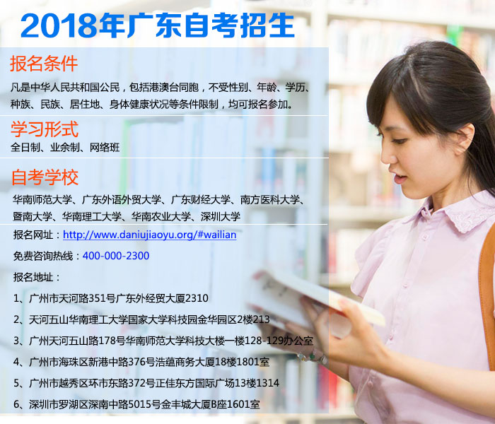 二、招生院校:华南师范大学、暨南大学、广东外语外贸大学等等,各个主考院校均有相应的专业供考生选择,考生可根据专业要求、课程设置以及自身情况选择专业报考。
