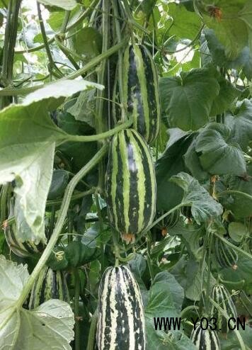 特征特性:早中熟品种,植株长势强,子蔓结瓜,雌花密;果实长锥形,一端大,一端稍细而尖,似羊角,故名羊角蜜。果皮灰绿,肉色淡绿,内厚2cm,含量11.7%,质地松脆,汁多清甜,品质优;单瓜重600g,亩产3000kg以上。