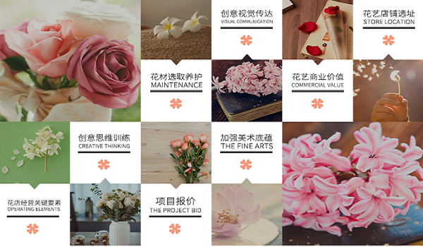 3.紧跟时尚潮流全方面技能提升增强行业竞争能力:开一家花店难道只是卖花吗,当然不是。作为视觉系行业,要经营一家“看的过去”的花店成本也是很可观的,单纯靠零售卖花不足以实现令人满意的利润空间。我们将全方面的提升学员产品开发能力以及项目竞争能力。要记住,一个运营良好的花店20%销售额来自店铺,80%来自项目。