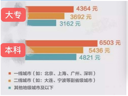 2.大专生和本科生薪资待遇对比(呈现方式:下图)