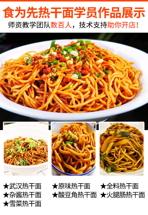 - 1.食为先热干面项目特意引进的师傅曾从业在武汉地区有一千多家店的某品牌店里工作过多年;