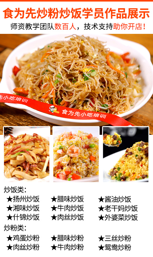 - 标准教学 各分校配套完善,300+小吃创业项目标准化流程教学