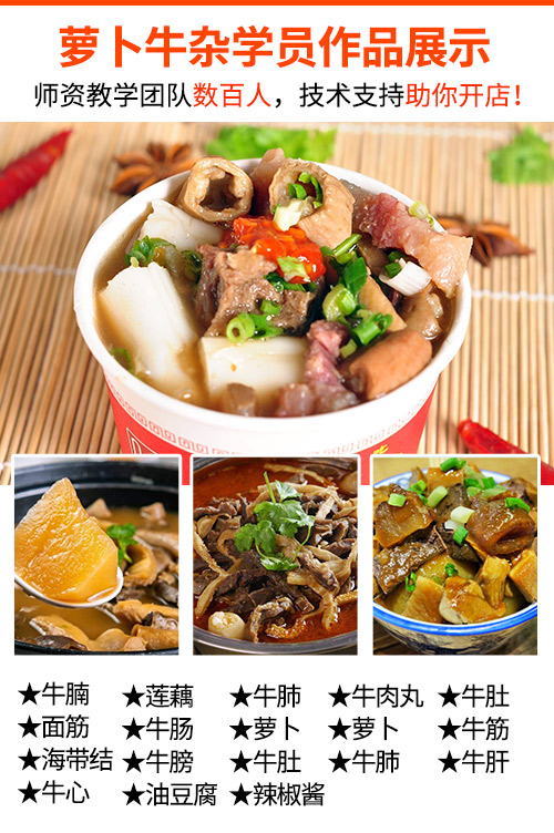 - 4.冻品牛杂供货比较稳定,进货价格也便宜些,但一般人找不到供货渠道,食为先学员我们会告诉拿货渠道;