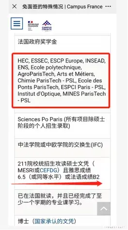 往前回溯,其实在2020年的法国免面签名单中,此条要求为:“精英学校”项目项目+雅思6.0 就可以免面签;在2021年2月公布的名单中,已经提高门槛了要求雅思6.5。
