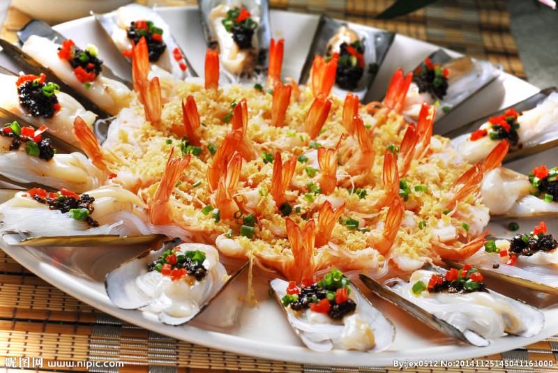 (海鲜类):清蒸基围虾、蒜蓉蒸扇贝
