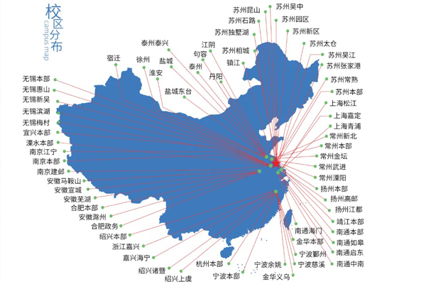 截至2019年,在苏州、南京、无锡、常州、扬州、杭州、宁波、金华、嘉兴、绍兴,芜湖、滁州等地拥有70余家校区的综合类培训机构。