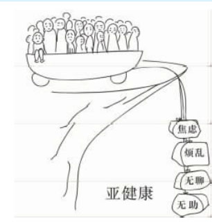 当今社会,人们的物质生活越来越丰富,可精神上的压力却越来越大。面对着来自升学、择偶、求职、晋升、赚钱等各方面日益激烈的竞争压力,越来越多的人出现了心理亚健康状态。如图所示,焦虑、烦乱、无聊、无助等心理问题已经让很多人不堪重负,将他们推到了悬崖边缘。