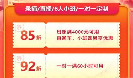 11月12日-11月17日,上海新东方英语的托福班课满4000元享【85折】优惠,一对一课程满60小时享【92折】优惠,班型包括录播/直播/6-8人小班/1V1定制课。无论你是学业忙,时间少,还是备考效率低,做题错误率高我们都有课程适合你!从知心录播、畅学直播到6人小班、1对1定制等课程,配套口语、写作批改,更有答疑、伴学多种服务。